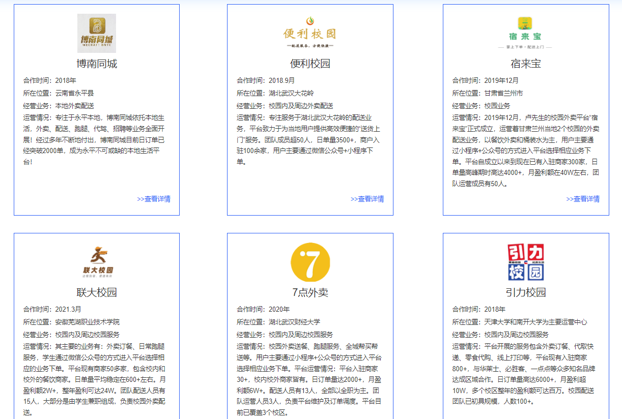 覆盖目前市场上多种跑腿服务,例如:帮我送、帮我取、代排队、外卖跑腿、交友盲盒、表白墙、拼团团购等服务,同时开放应用程序接口,能对接美团、饿了么、抖音的订单,帮助运营者渡过跑腿小程序前期的发展阶段。