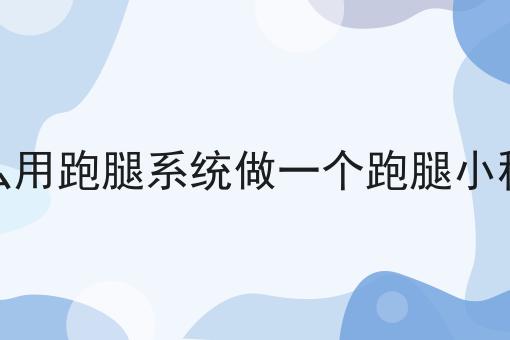 怎么用跑腿系统做一个跑腿小程序