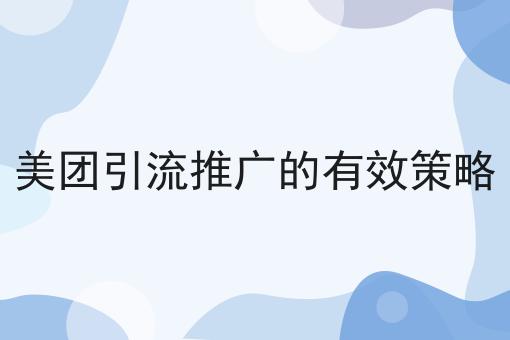 美团引流推广的*策略