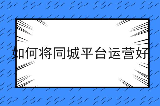 如何将同城平台运营好