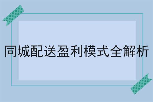 同城配送盈利模式全解析