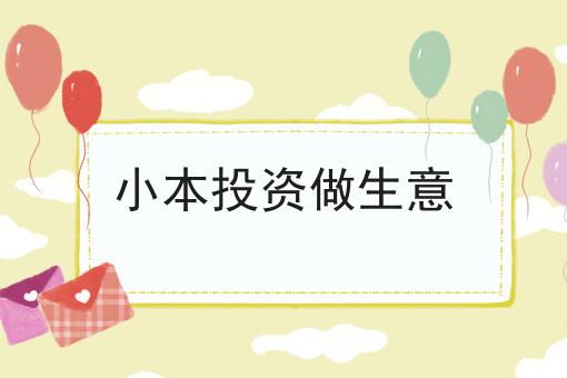 大盘点!小本投资做生意